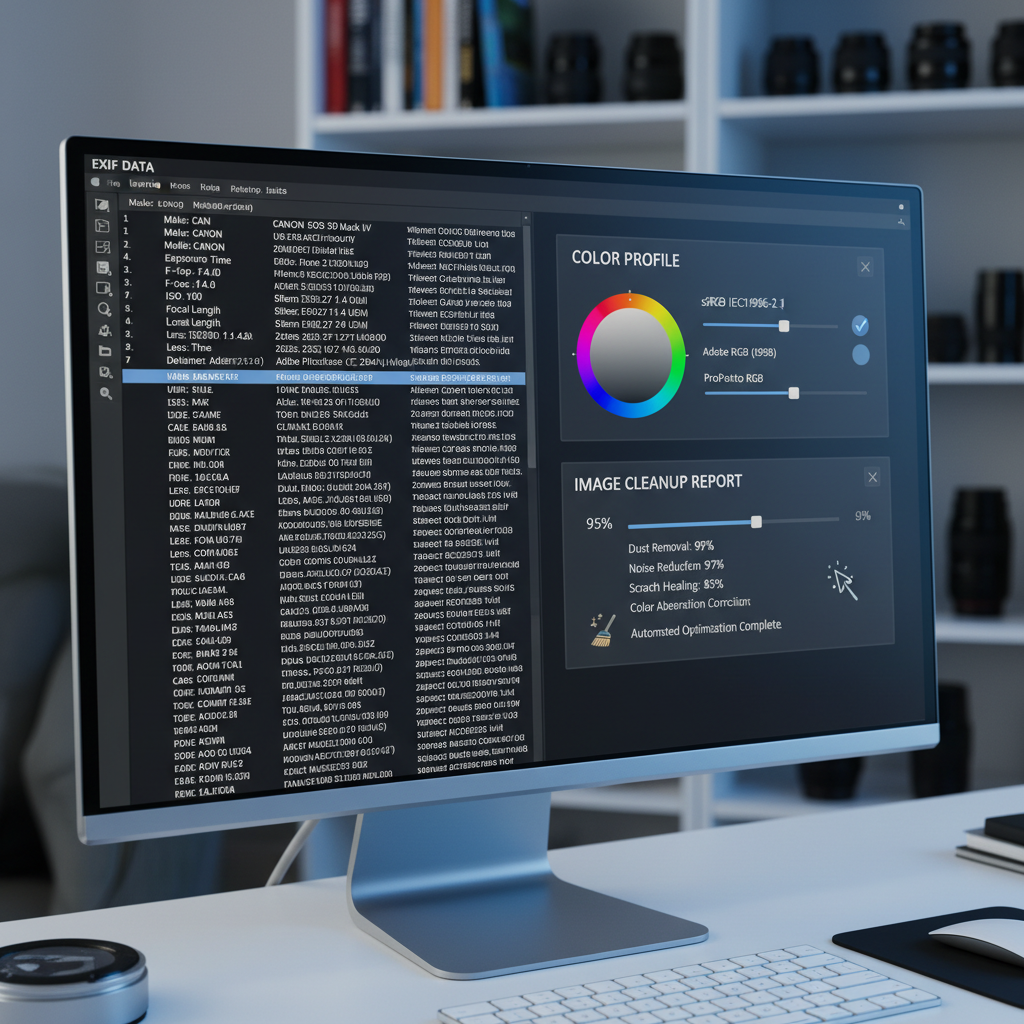Sztuczna inteligencja automatycznie usuwa metadane, analizuje profile kolorystyczne i optymalizuje głębię barw.
