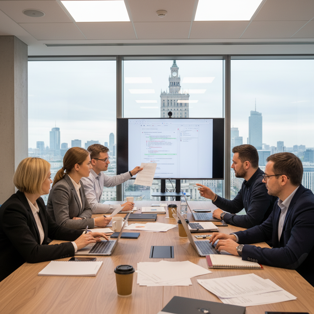 Zespół w polskiej firmie analizuje kryteria wyboru narzędzi do szybkiej edycji dokumentów.