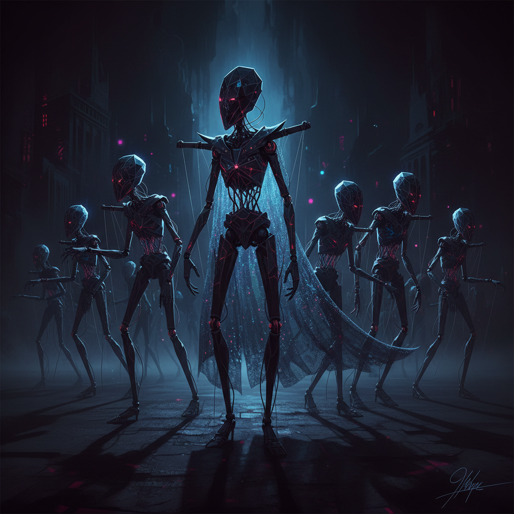 Surrealistyczny motyw rywalizacji ludzi i AI. Alt: Niespodziewane zwroty w rozwoju narzędzi AI do zarządzania projektami.